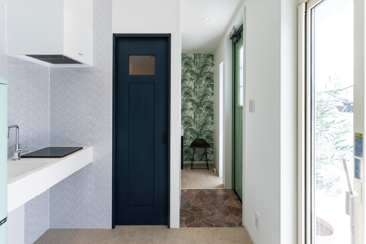 離島にぴったりなカリビアンブルーの外壁と真っ白なデッキ。