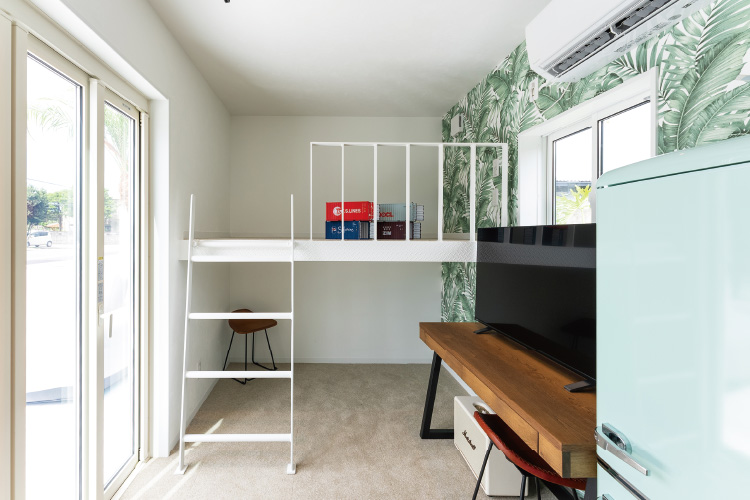 水回りとロフトも完備し、快適性抜群。また、見た目だけでなく、DAIKOHのコンテナハウスは日本のJIS規格の鋼材を使用し、日本の建築基準を完璧に満たしています。